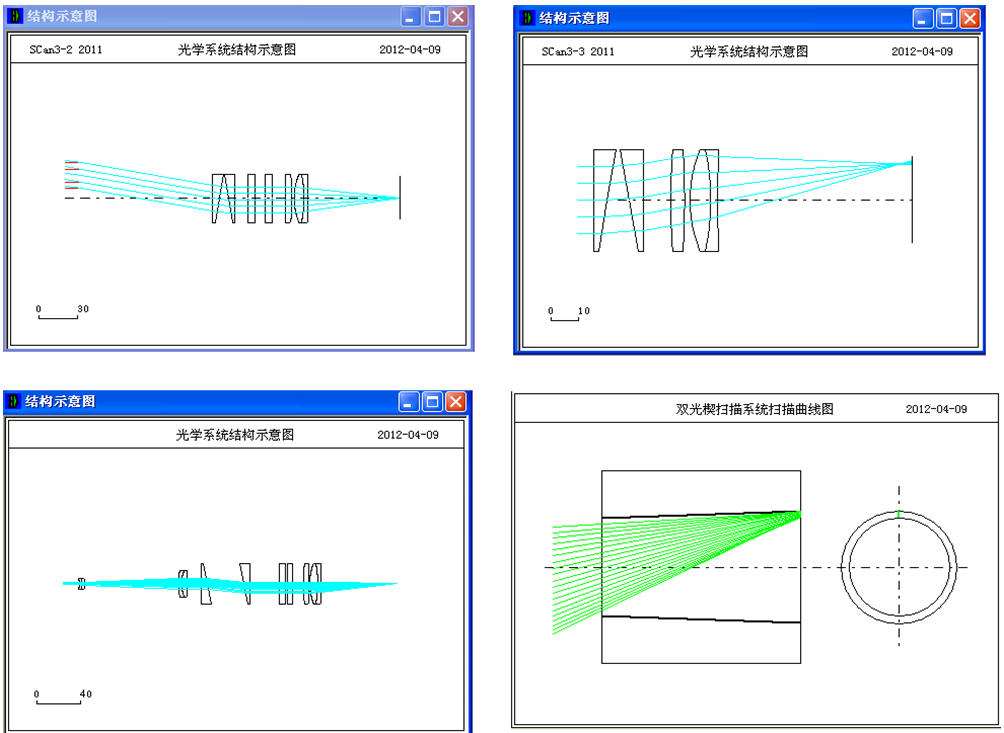 本程序具有自動(dòng)設(shè)計(jì)各類掃描光學(xué)系統(tǒng)初始結(jié)構(gòu)設(shè)計(jì)功能,其中包括物方掃描和像方掃描的單反射鏡掃描、雙反射鏡掃描以及雙光楔掃描的光學(xué)系統(tǒng)。