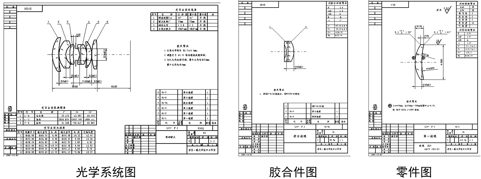 本軟件包有很強(qiáng)的自動(dòng)繪制各種光學(xué)圖紙的功能。在光學(xué)系統(tǒng)出圖階段,可以按照標(biāo)準(zhǔn)化的要求,滿足 GB13323-91 光學(xué)制圖以及其他一系列諸如光學(xué)零件公差配合,零件倒邊倒角的要求,繪制光學(xué)系統(tǒng)圖,光學(xué)零件圖以及光學(xué)棱鏡圖等。