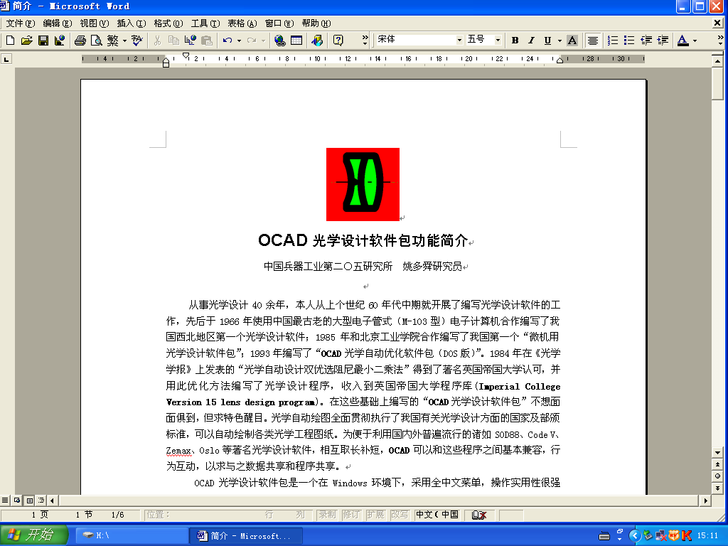 當(dāng)前國內(nèi)外優(yōu)秀的光學(xué)設(shè)計(jì)軟件很多,但大多數(shù)都集中在光學(xué)系統(tǒng)的優(yōu)化和像質(zhì)評(píng)價(jià)方面,但如何確定光學(xué)系統(tǒng)的初始結(jié)構(gòu),在優(yōu)化過程中如何隨時(shí)貫徹我國有關(guān)光學(xué)設(shè)計(jì)標(biāo)準(zhǔn),特別是貫徹光學(xué)零件的表面半徑標(biāo)準(zhǔn)、邊沿厚度標(biāo)準(zhǔn)以及中心厚度標(biāo)準(zhǔn)等都需要在優(yōu)化過程中及時(shí)體現(xiàn),否則在優(yōu)化之后再考慮這些勢(shì)必會(huì)影響優(yōu)化結(jié)果。此外,在系統(tǒng)優(yōu)化合格之后如何貫徹我國相應(yīng)光學(xué)標(biāo)準(zhǔn)繪制光學(xué)圖紙也是光學(xué)設(shè)計(jì)者的繁重工作。為此OCAD光學(xué)自動(dòng)設(shè)計(jì)程序就是出于這些目的編制的適用性光學(xué)設(shè)計(jì)軟件。為了與國內(nèi)外一些優(yōu)秀光學(xué)軟件取長補(bǔ)短,該程序設(shè)計(jì)了與其它有關(guān)軟件鏈接互動(dòng)功能,可以實(shí)現(xiàn)和其它光學(xué)軟件數(shù)據(jù)共享,互相轉(zhuǎn)換,以求在整個(gè)光學(xué)設(shè)計(jì)過程中利用不同光學(xué)軟件的優(yōu)勢(shì)完成光學(xué)設(shè)計(jì)工作。OCAD還可以與Word文字處理軟件關(guān)聯(lián)自動(dòng)把設(shè)計(jì)過程中的資料及時(shí)轉(zhuǎn)換成Word文文件格式并顯示在接口上便于處理。OCAD光學(xué)自動(dòng)設(shè)計(jì)程序的主要功能簡介如下。